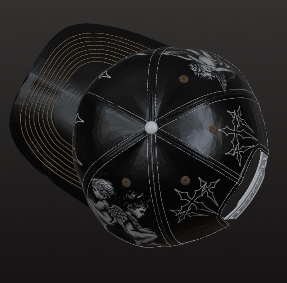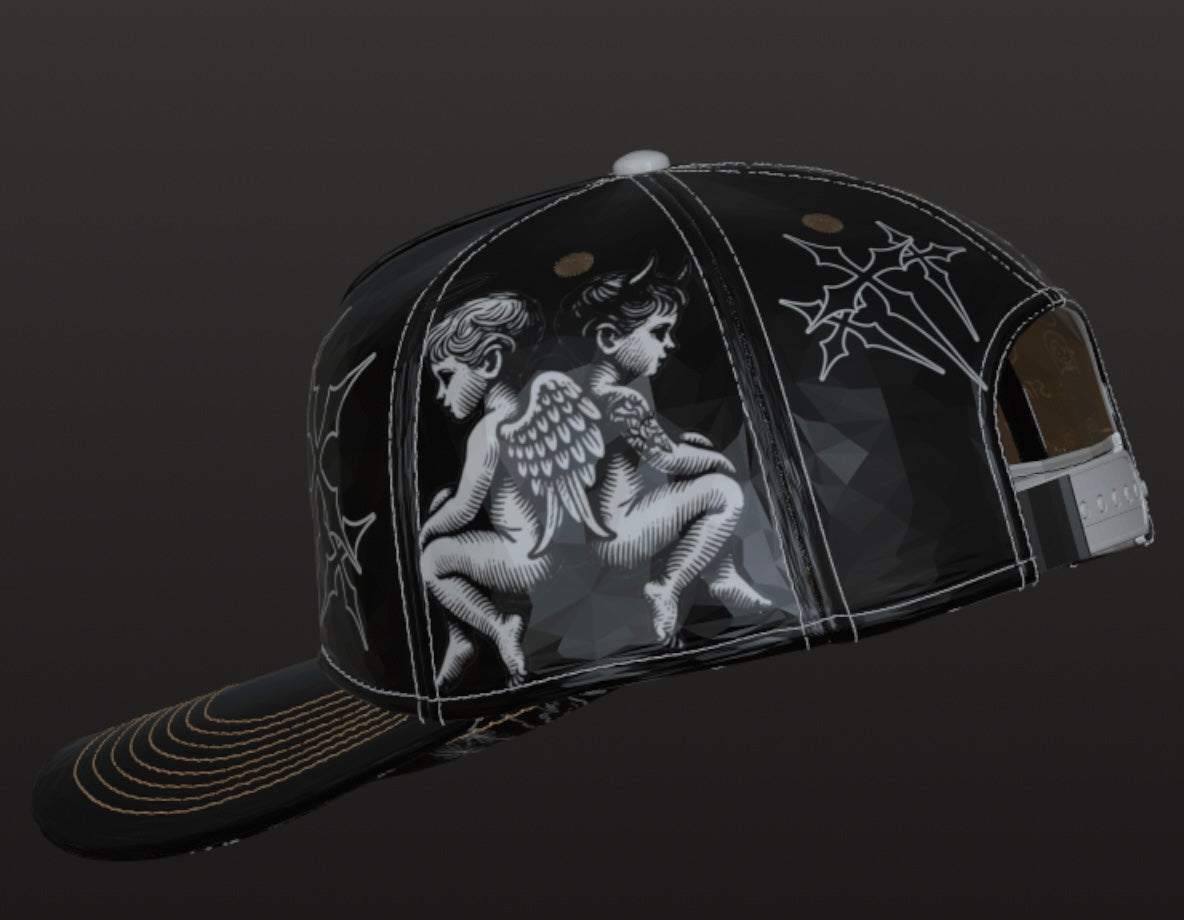 Esta gorra celebra la eterna lucha y armonía de los opuestos. Con un diseño audazmente artístico que fusiona la iconografía clásica de los querubines con un toque oscuro y rebelde, es perfecta para quienes valoran la complejidad y el arte en el streetwear.
